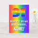 Tarjeta 91 Aniversario: Colorido, divertido patrón arcoiri