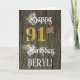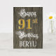 El frente de este lujoso y formal diseño de tarjetas de felicitación con temática de cumpleaños incluye el mensaje "Feliz cumpleaños 91", junto con un editable nombre de destinatario. Parte del mensaje está en un texto elaborado de estilo de escritura, el gran número "91st" presenta un patrón de aspecto falso/imitación de inspiración dorada, y el fondo tiene un patrón inspirado en la imitación/imitación de madera falsa. El interior tiene un mensaje de bienvenida de cumpleaños de personalizable, o tal vez podría ser borrado y dejado en blanco si un mensaje se va a escribir a mano en su lugar. Una elegante y personalizada tarjeta de felicitación de cumpleaños como esta puede ser enviada para celebrar el cumpleaños noventa y uno de alguien. [~Z0000561]