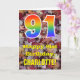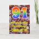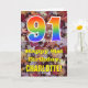 La parte delantera de este colorido diseño de tarjetas de felicitación de cumpleaños inspirado en la naturaleza, con temática otoñal, presenta un gran número "91" con un diseño inspirado en el gradiente del espectro arcoiris. También incluye el mensaje "Feliz cumpleaños número 91", y un nombre de personalizable. El fondo de la parte delantera de la tarjeta presenta un patrón rústico de hojas de otoño caídas. El interior presenta un mensaje de bienvenida de cumpleaños de personalizado, o tal vez podría ser borrado y dejado en blanco si se va a escribir un mensaje a mano. Una tarjeta de cumpleaños personalizado como esta puede ser una manera divertida de enviar deseos de cumpleaños a alguien que está celebrando su cumpleaños número noventa. [~Z0000384]