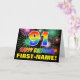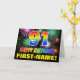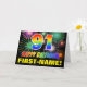 La parte delantera de este alegre, divertido y colorido diseño de tarjetas de felicitación de cumpleaños incluye un gran número "91" y el mensaje "FELIZ CUMPLEAÑOS", ambos con un coloreado de patrones inspirado en el gradiente del espectro del arcoiris, junto con un audaz nombre de destinatario editable amarillo. El frente también tiene un patrón de fondo inspirado en los fuegos artificiales de celebración multicolor. El interior presenta un mensaje de bienvenida de cumpleaños personalizado, o tal vez podría ser borrado y dejado en blanco si se va a escribir un mensaje a mano. Una colorida tarjeta de cumpleaños personalizada como esta podría ser una manera divertida de celebrar los noventa primeros cumpleaños de alguien. [~Z0000471]