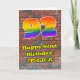 Este fascinante y vibrante arte urbano callejero y diseño de tarjetas de felicitación de cumpleaños con tema de graffiti presenta un gran número "92" con un colorido patrón inspirado en el gradiente del espectro arcoiris, junto con el mensaje "Feliz cumpleaños 92", y un nombre personalizado. El fondo del frente tiene un patrón de pared de ladrillo. El interior tiene un mensaje de bienvenida de cumpleaños de personalizable, o tal vez podría ser borrado y dejado en blanco si un mensaje se va a escribir a mano en su lugar. Una tarjeta de felicitación de cumpleaños vibrante y personalizada como esta podría ser una manera divertida de enviar algunos deseos de cumpleaños a alguien que está celebrando su cumpleaños noventa y dos. [~Z0000586]