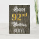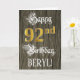 El frente de este lujoso y elegante diseño de tarjetas de felicitación con temática de cumpleaños incluye el mensaje "Feliz cumpleaños 92", y un nombre personalizado para el destinatario. Parte del mensaje está en un texto elaborado de estilo de escritura, el gran número "92nd" presenta un patrón de aspecto falso/imitación inspirado en el oro, y el fondo tiene un patrón inspirado en la imitación/imitación de granos de madera. El interior tiene un mensaje de bienvenida de cumpleaños de personalizado, o tal vez podría ser borrado y dejado en blanco si un mensaje se va a escribir a mano en su lugar. Una tarjeta de felicitación ornamental de cumpleaños de personalizable como esta podría ser enviada para celebrar el cumpleaños noventa y dos de alguien. [~Z0000561]