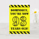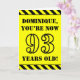 El frente de este divertido diseño de tarjetas de felicitación con temática de cumpleaños incluye un nombre editable y el mensaje "¡YA TIENES 93 AÑOS!" en un texto de estilo esténcil negro sobre un fondo amarillo. El frontal también presenta un llamativo patrón rayado negro y amarillo en los bordes superior e inferior. El interior presenta un mensaje de bienvenida de cumpleaños de personalizable, o tal vez podría ser borrado y dejado en blanco si se va a escribir un mensaje a mano. Una tarjeta de personalizable como esta puede ser una manera divertida de mandar deseos de cumpleaños a alguien que está celebrando su noventa tercer cumpleaños. [~Z0000413]