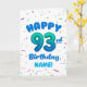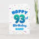 Tarjeta 93rd Balloon Number Custom Name Birthday Card