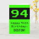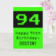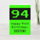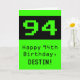 Tarjeta 94º cumpleaños: Nerdy / Geeky Style "94" y nombre