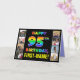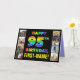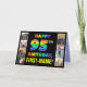 La parte delantera de este alegre y divertido diseño de tarjetas de felicitación con temática de cumpleaños muestra el mensaje "FELIZ 95º CUMPLEAÑOS", con un patrón de gradiente inspirado en el espectro arcoiris multicolor, junto con un nombre de destinatario de personalizable. Las fotos a la izquierda y a la derecha del mensaje con motivos de arco iris en la parte delantera de la tarjeta se pueden personalizar, tal vez con fotos del destinatario, la familia y amigos del destinatario, y/o el(los) remitente(s) de la tarjeta. El interior presenta un mensaje de bienvenida de cumpleaños editable, o tal vez podría ser borrado y dejado en blanco si se va a escribir un mensaje a mano. Una atrayente y editable tarjeta de felicitación de cumpleaños como esta podría ser una manera divertida de enviar un mensaje de felicitación de cumpleaños a alguien que está celebrando su cumpleaños noventa y cinco. (Fotografía © Storytree Studios, Stanford, CA.) [~Z0000667]