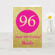 Tarjeta 96.º feliz cumpleaños Purpurina de oro y rosado ca