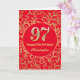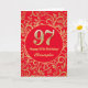 Tarjeta de cumpleaños 97 del patrón floral rojo y dorado. Para una mayor personalización, haga clic en el botón "Personalizar" y utilice nuestra herramienta de diseño para modificar esta plantilla.