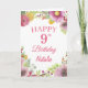 Noveno Nacimiento Watercolor Floral Flores Pink Card con nombre y edad personalizados. Para una mayor personalización, haga clic en el botón "Personalizar" y utilice nuestra herramienta de diseño para modificar esta plantilla.