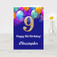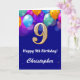 Tarjeta 9.º Balón azul y dorado de la marina de cumpleaños