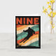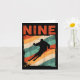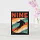 Tarjeta 9.º Chica de niños de 9 años en esquí retro
