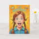Audaces tonos amarillos y turquesa en un estilo de historieta de superhéroes y un joven y feliz chica pelirrojo hará de esta tarjeta de 9 años, la elección perfecta.