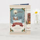 Tarjeta A Christmas card with snowy scenes, festive text,