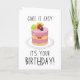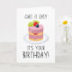 A cute and funny birthday greeting card featuring a smiling cake illustration and playful text. Perfect for birthdays of friends, family, or anyone who loves sweet and cheerful designs. A lighthearted card that brings joy and a smile on their special day.
