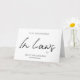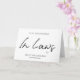 Sorprenda a su familia con una hermosa tarjeta de agradecimiento. Esta elegante tarjeta del día de la boda es una manera maravillosa de mostrar cuánto aprecias su amistad, amor y apoyo el día en que te conviertes en esposa. Escribe un mensaje personalizado en la espalda compartiendo tu amor y aprecio. Orden ahora, y dale un toque de tesoro siempre.