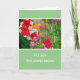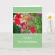 PETUNIAS ROJAS Y BLANCAS. A TRAVÉS DE UNA ALAMBRADA TENUE, FLORES ROSADAS Y DORADAS ENTRE EL FOLLAGE VERDE. TEXTO DE PORTADA: "A MI OTRA MAMÁ" Y TEXTO INTERIOR: "ERES COMO UNA SEGUNDA MADRE PARA MÍ. GRACIAS POR ESO. AMOR Y FELIZ DÍA DE LA MADRE" EL TEXTO ES TOTALMENTE PERSONALIZABLE.