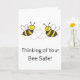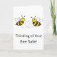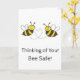 Esta tarjeta de saludo dice "¡Pensando en ti! Bee Safe" y puede ser personalizado con su propio saludo especial. Que esa persona especial sepa que está pensando en ellos durante la pandemia de "refugio en el lugar" y Covid-19.