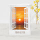 Tarjeta abrir ventana blanca con la escena del amanecer