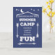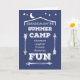 Desee a su nieta divertidas aventuras con esta hermosa tarjeta de pensamiento azul marino y blanco. Palabras sobre un campo de verano muy especial rodeado de flechas, estrellas y una luna en la parte superior.