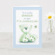 Esta encantadora tarjeta del Día de San Patricio para un nieto incluye un adorable oso de peluche de suave color verde, rodeado de detalles alegres. El borde azul de la tarjeta le da un toque fresco y divertido, mientras que el oso y el shamrock verde le dan un toque alegre de suerte. Dentro, un mensaje acogedor y sincero le desea al pequeño un día lleno de calor, alegría y todas las bendiciones de su primer Día de San Patricio. Esta tarjeta es la manera perfecta para que los abuelos celebren este hito especial con su precioso nieto.