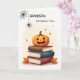 Dale a tu nieto una risa en esta Halloween con una tarjeta divertida que es perfecta para cualquier edad — ya sea un niño pequeño, adolescente, o adulto. Una alegre linterna de jack-o’ de un montón de libros mientras una araña juguetona desde su web, atando al desenfadado mensaje "Just Dropping In" (Sólo dándole vueltas). Una mezcla festiva de espeluznante y tonto, este lindo diseño de Halloween es una manera divertida de enviar amor, risas y vítores de Halloween a tu nieto, cercano o lejos.