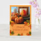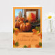Bonne féte de l'Action de Grâce. "Feliz Día de Acción de Gracias" escrito en francés en la portada. Inside se traduce como "Bendiciones para ti y para tu familia". La tarjeta es para el Día de Acción de Gracias en Canadá. Incluye una fotografía de una escena otoñal de objetos tradicionales de la temporada de otoño. Arte, imagen y verso copyright © Shoaff Ballanger Studios, 2022.
