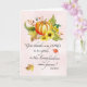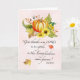 Esta hermosa tarjeta religiosa de Acción de Gracias muestra el querido verso del Salmo 107:1, "Den gracias al Señor, porque Él es bueno; Su amor perdura para siempre", ambientado en un entorno sereno de acuarela. Un abundante arreglo de calabaza, adornado con girasoles dorados, hojas de otoño y otros productos botánicos de temporada, se sienta elegantemente en la cima, creando una cálida y atractiva escena otoñal. El lavabo de acuarela suave aporta un toque suave y apacible al conjunto.