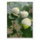 Tarjeta con foto de tres bellotas verdes y hoja de roble