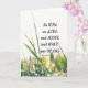 La carta inspiradora de las escrituras de la tarjeta de saludo representa una fotografía de la naturaleza de un prado con hojas verdes de hierba y flores silvestres. Presenta un Verso motivador de la Biblia, Actos 17:28, "En él vivimos y nos movemos y tenemos nuestro ser".