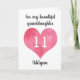 Una tarjeta personalizada de cumpleaños 11 para la nieta que cuenta con un corazón acuarela. Puedes personalizar el corazón con la edad que necesitas y agregar su nombre debajo del corazón. El mensaje de la tarjeta interior lee un mensaje de cumpleaños sincero, que puede personalizar fácilmente si lo desea. La parte posterior de esta tarjeta de cumpleaños del corazón dice Feliz Cumpleaños. Un único regalo de cumpleaños para ella.