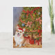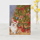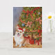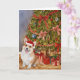 Tarjeta Acuarela Corgi bajo el árbol de Navidad