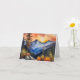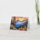 Tarjeta Acuarela del amanecer sobre montañas cubiertas de