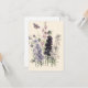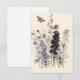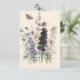 Tarjeta Acuarela flores de jardín púrpura, mariposa