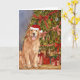 Tarjeta Acuarela Golden Retriever Under Christmas Tree