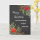 Feliz Navidad para la tarjeta de la diosa en poinsettias de color agua rústica y fondo follaje y pizarra.