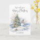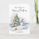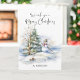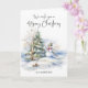 Tarjeta Acuarela Snowman y Feliz Saludo de Navidad