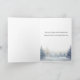 Un muñeco de nieve sonriente con pino y un árbol de pino adornado con caligrafía de Feliz Navidad. Mensaje dentro.