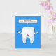 Un personalizado de un diente parlante contra un fondo de color azul brillante. El diente dice 'Adiós a un dentista especial'.