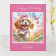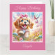 Un diseño adorable que presenta un cachorro de Cocker Spaniel en un hermoso prado de flores y mariposas rosadas. Perfecto para el cumpleaños de un niño o tarjeta de "Pensando en ti".