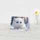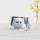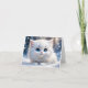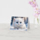 Tarjeta Adorable gato blanco esponjoso ojos azules saludo
