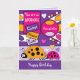 Tarjeta de bienvenida de cumpleaños para tu adorable sobrina. Púrpura, rosa, naranja y lila con pájaros ladinos. Agrega un nombre y tu mensaje.