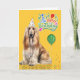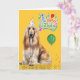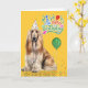 Tarjeta Afghan Hound Dog in a Party Hat on Yellow Birthday