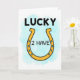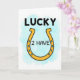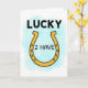 Este diseño muestra una herradura dorada centrada en un fondo azul cielo pálido con un lavado suave y acuarelado que se siente ligero y aireado. La herradura está delineada con líneas oscuras y rellena de un amarillo dorado cálido, como un amuleto de la suerte que mantendrías cerca de alguien que te importa 💚. Arriba, "LUCKY" se sitúa cerca de la parte superior en letras sans-serif negras y fuertes, destacando claramente contra el azul. Dentro de la curva de la herradura, "2 HAVE" está escrito en un estilo manuscrito negro más suelto, metido ordenadamente en el espacio abierto como una nota privada entre amigos. Pequeños acentos en forma de lágrima en un azul más profundo puntean el borde interior de la herradura, repitiendo el fondo y añadiendo un ritmo suave ☘️. La disposición simple deja mucho espacio para respirar, haciendo que las palabras y el símbolo parezcan inclinarse entre sí de una manera tranquila y afectuosa. La herradura central sigue siendo el foco principal, enmarcada por el campo azul calmado y las gotas azules dispersas a lo largo de su borde interior. Comparte sentimientos del Día de San Pat