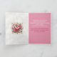 Celebre la belleza de la maternidad con nuestra impresionante tarjeta de felicitación doblada que presenta una ilustración detallada de vista lateral de una futura madre afroamericana radiante. Adornada con un vestido de tutú rosa con adornos dorados, aretes de diamantes y una elaborada tiara, esta tarjeta emana un encanto regio. El interior izquierdo muestra elegantes corazones rosados, blancos y dorados, arreglos florales y acentos de diamantes. Personalice con el nombre de la futura mamá y personalice el mensaje para un gesto verdaderamente único y sincero. Un recuerdo que captura la esencia de la alegría, la elegancia y la anticipación.