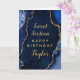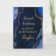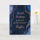 Esta elegante y glamorosa tarjeta de cumpleaños puede ser personalizada con un nombre o título como hija, nieta, sobrina, amiga, etc. El diseño está decorado con un fondo de mármol agate azul marino con detalles purpurinas en oro falso. El texto combina el guión manuscrito y las fuentes sans serif modernas para un aspecto elegante y sofisticado.