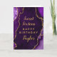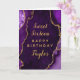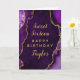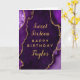 Esta elegante y glamorosa tarjeta de cumpleaños puede ser personalizada con un nombre o título como hija, nieta, sobrina, amiga, etc. El diseño está decorado con un fondo de mármol violeta agado y con acentos purpurinas de oro falsos. El texto combina el guión manuscrito y las fuentes sans serif modernas para un aspecto elegante y sofisticado.