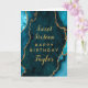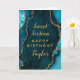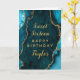 Esta elegante y glamorosa tarjeta de cumpleaños puede ser personalizada con un nombre o título como hija, nieta, sobrina, amiga, etc. El diseño está decorado con un verde azulado fondo de mármol agate azul con falsos toques purpurinas dorados. El texto combina el guión manuscrito y las fuentes sans serif modernas para un aspecto elegante y sofisticado.