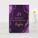 Esta elegante y glamorosa tarjeta de cumpleaños puede ser personalizada con un nombre o título como mamá, hija, nieta, sobrina, amiga, etc. El diseño está decorado con un fondo de mármol violeta agado y con acentos purpurinas de oro falsos. El texto combina el guión manuscrito y las fuentes sans serif modernas para un aspecto elegante y sofisticado.