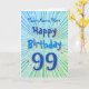 Tarjeta Age 99 Fun 3D Blue Chill editable 99th Birthday