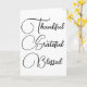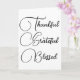 Agradecido Agradecida Bendecido guión personalizado tipografía simple elegante y lindo Día de Acción de Gracias tarjeta doblada. Texto negro personalizado en fondo blanco. Puedes personalizarlo con el nombre de tu familia, cita, etc.